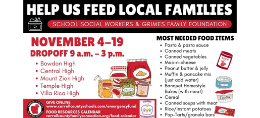 Mt. Zion Community Food Bank 296 Tanner Beach Rd. Carrollton. 770-845-7216 3rd Saturday of month and Special Community/ School Events.