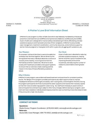 A Mother’s Love program is a Plan of Safe Care which was federally mandated by child abuse